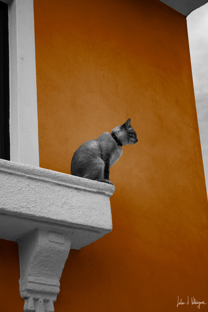 Ahí están sentados los gatos, al sol de octubre. Los animales gatos, ¿dónde están? Están en la vida.