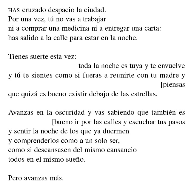 —Puede que la razón más fuerte sea el cansancio. Pero también cierta sospecha de que esas articulaciones son una organización de lo inorganizable. Es decir, simultáneamente con el cansancio, puedo haberme dicho: bueno, ¡que monte el libro el lector, si quiere! Di en que me pareciese una mecánica muy secundaria y hasta innecesaria la disposición que intenta reforzar el sentido creando capítulos con poemas… En poesía, el poema funciona de manera instantánea, si funciona. Si esto es así, funcionarán también la palabra, la frase, el libro… Empecé a sospechar (no sé si continuaré en la sospecha) que la trabazón lógica de los hechos poemáticos –que otra cosa son los hechos poéticos– no es, o no era al menos en este caso, imprescindible.