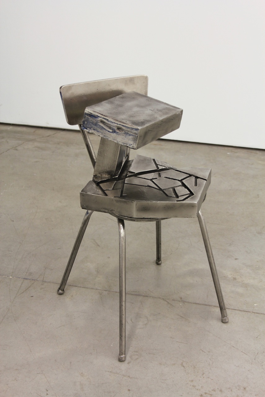 Junto a esculturas realizadas en fundición de aluminio, se muestran dibujos (como, por ejemplo, la serie Reiniciar Retomar-Reiterar, realizada con grafito, cinta adhesiva y pintura) y pinturas sobre soporte fotográfico (la serie Sillalfa, entre otras) articulados en varios murales, así como nuevas esculturas en madera y escayola. En estas, Irazu recurre a un material como la resina para cubrir sin ocultar completamente objetos (cajas, restos de otras construcciones, etc.) que, posteriormente, son ensamblados en conjuntos definidos por su unidad material.