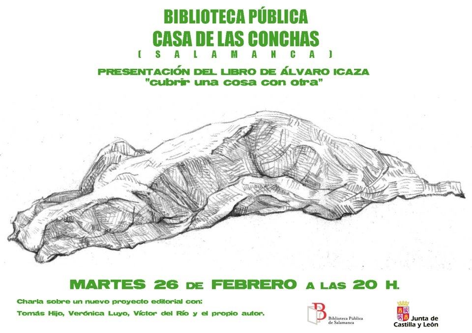 - `Cubrir una cosa con otra´ se presentará este martes, 26 de febrero, a las 20.00 horas en la Biblioteca pública de la Casa de las Conchas de Salamanca.
