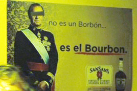 Ojo al cartel: «No es un Borbón, es el Bourbon». (Ver nota abajo)