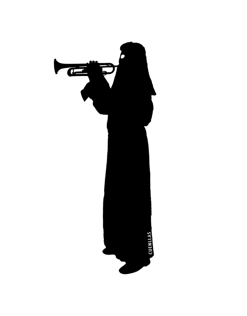 Ha fotografiado desde las gárgolas de Notre Dame en París al interior del Atomium en Bruselas. Sin embargo Carlos Cuenllas no realiza una fotografía de reportaje. Su objetivo se fija en el paisaje, en objetos, en personas, en situaciones, en detalles. Es una obra de una temática muy amplia, en la que adapta el formato y la selección al proyecto concreto. Y si hay un tema que destaque es el retrato, como el de esta serie que desprende misterio, significado conceptual, que se puede interpretar tanto del uso de la túnica y del capillo que cubre la cabeza del cofrade como de los demás símbolos. Esta interpretación se abre cuando las mismas fotografías se exponen en distintas sociedades y culturas, aunque sólo en principio, ya que un espectador informado sabrá que la tradición religiosa de la Semana Santa, tan importante en España, como en Colombia, está en el origen de este trabajo.