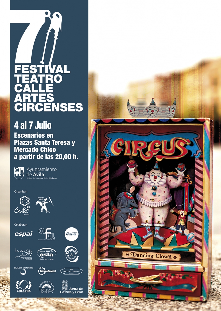 Durante cuatro días, concretamente del 4 al 7 de julio, la ciudad de Ávila servirá de escenario para la celebración de la séptima edición del Festival de Teatro de Calle y Artes Circenses. A partir del jueves actuarán allí una veintena de compañías procedentes de lugares como Granada, La Coruña, Vitoria, Madrid, Navarra, Zaragoza, Mallorca, Valladolid o Madrid, así como de otros países, como Argentina.