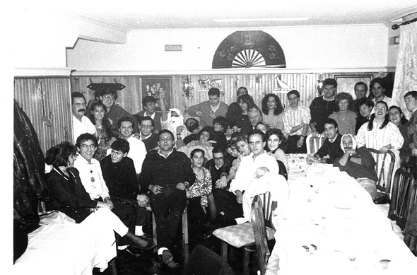 Enero de 1990. «Cena de despedida para los primeros que nos embarcamos en la aventura de Jerez: Teo Brugos, Mª Ángeles Bernal, Isabel Barrionuevo y Amparo Martínez». Foto: Mauricio Peña.