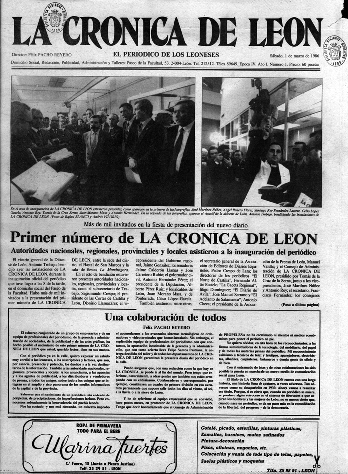 El primer número de La Crónica de León. Sábado, 1 de marzo de 1986.