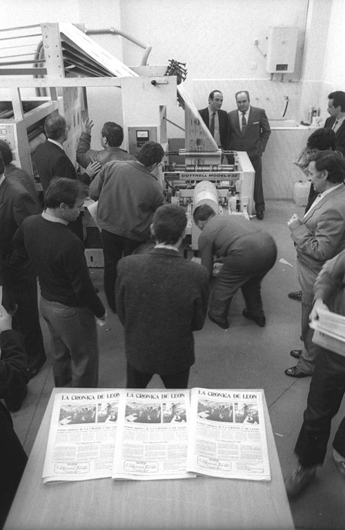 El director pide las últimas flechas para arriba con una ironía muy propia: “No dejéis ninguna para mañana”. Lolo llega tarde a traer el chiste, para que todo sea igual que siempre. Los de prácticas (cruel destino, hacía muchos años que no nos tocaban tan buenas) debaten sobre si no es la mejor lección que podían recibir sobre la profesión que han elegido ver cómo muere un periódico, expresión que responde a una opinión de aquel 1 de marzo de 1986, en el número 1 de La Crónica de León que se titulaba: “Así nace un periódico”. La foto recogía la bendición de la rotativa por Antonio Trobajo, que sigue en la casa como columnista y amigo. Un gran tipo, aunque me riña por mandar al obispo en triciclo a las visitas pastorales y, además, en malas compañías.