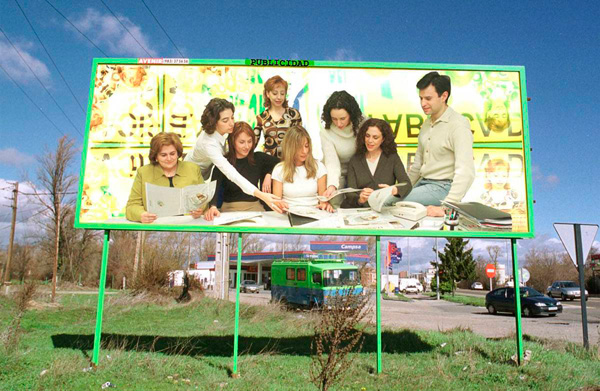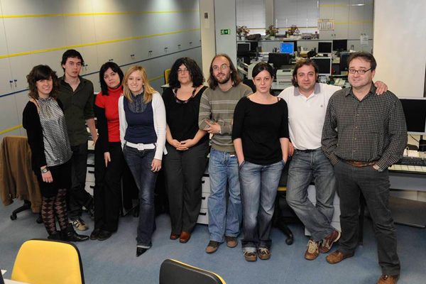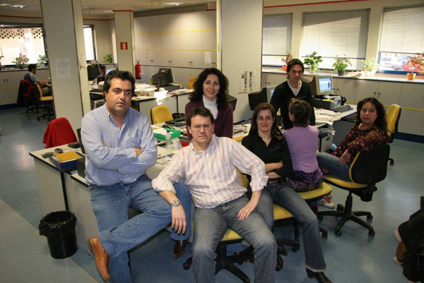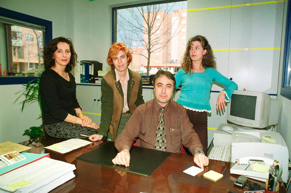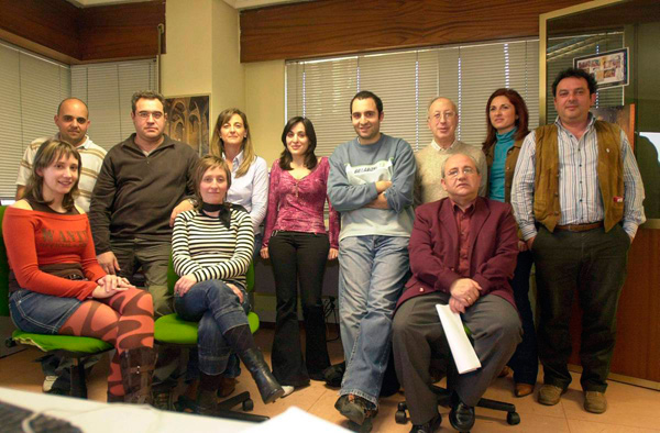 Imagen de 2001 del equipo de Publicidad (Mari Luz Diéguez, Inmaculada Escapa, Montse Pascual, Rosabel Gutiérrez, Mar de Paz, Nuria López, Ana Vaquero y Carlos Huerta). Fotografía: Mauricio Peña.