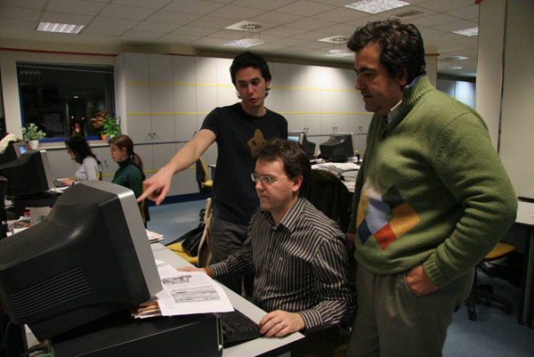 Último día de trabajo. Un redactor, un colaborador, uno de prácticas... y una forma de hacer, la de los ‘crónicos’, que desaparece. Fotografía: Mauricio Peña.