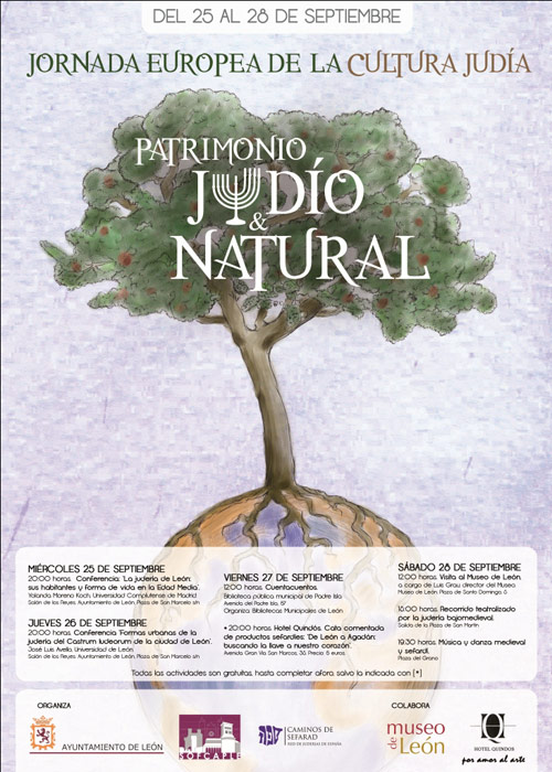 Entre este miércoles y el sábado (25 y 28 de septiembre) León acoge la Jornada Europea de la Cultura Judía, un evento que se celebra en una treintena de paises. Organizada por la concejalía de cultura del Ayuntamiento de León, cumple su decimocuarta edición y propone un amplio abanico de actividades relacionadas con el patrimonio histórico y cultural sefardí. Un legado palpable a pie de calle que recuerda la intensidad e influencia que ejercieron los judíos en la historia de esta ciudad y que ahora se rememora con el fin de reavivar un pasado común. Al mismo tiempo, en Toledo se opta por una propuesta relacionada con la poesía hebrea de ayer y de hoy, el día 29.