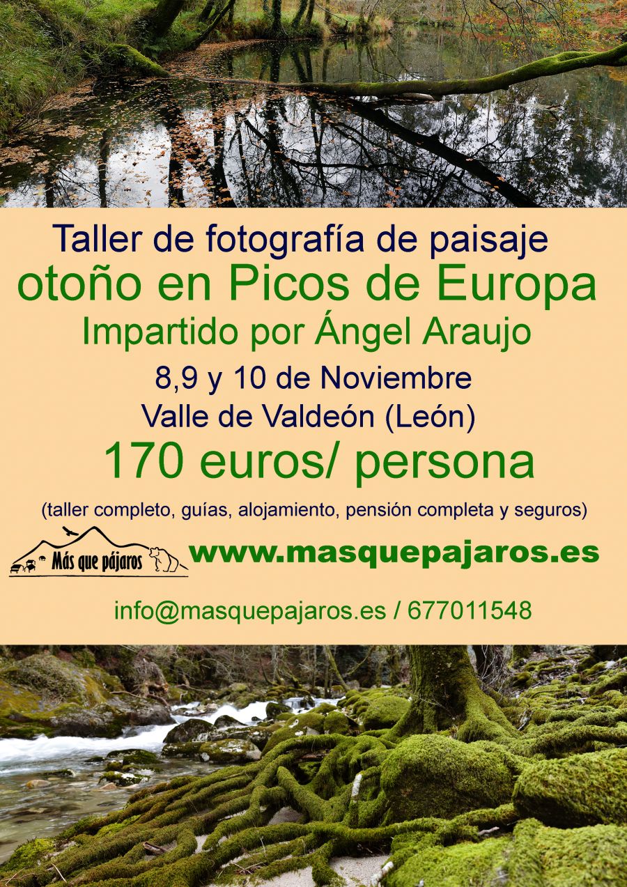 El fotógrafo Ángel Araújo impartirá un curso dedicado a la fotografía digital de Paisajes en Picos de Europa, los días 8, 9 y 10 de noviembre. «Se trata de un fin de semana largo, con curso, alojamiento y comidas en el mejor de los entornos y en la mejor época para captar todos los colores del Bosque Atlántico» explica el fotógrafo.