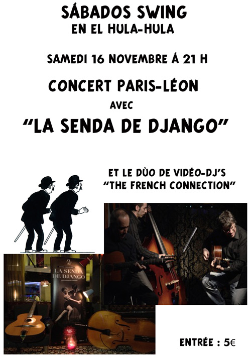 El ciclo de conciertos Sábados Swing se va asentando en el entrañable pub leonés Hula Hula. Esta vez la seduccion del swing manouche ha calado en tres destacados instrumentistas leoneses, Luis G. Alaiz, Jorge Majo y Carlos Rabanal. Los tres son músicos con mucha experiencia decididos a iniciar una nueva aventura. Con el nombre de La Senda de Django, se presentan al público con un concierto este sábado, 16 de noviembre, a partir de las nueve de la noche.