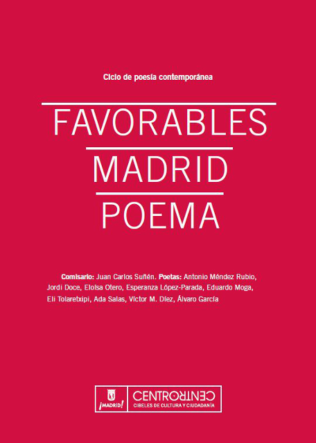 Este jueves, 19 de diciembre, me voy a Madrid, al CentroCentro, para departir durante dos horas con Juan Carlos Suñén, coordinador del ciclo Favorables Madrid Poema. Y tengo un poco de miedo, porque soy una gran tímida, mujer de pocas palabras, y en este tipo de actos públicos me sigue entrando una especie de tembleque espantoso, sudo y siento que no voy a estar a la altura. Pero bueno, al miedo sólo se le combate afrontándolo. Ildefonso Rodríguez, que estuvo el año pasado en este mismo ciclo, cuenta que lo pasó muy bien charlando con Suñén, y que la conversación les cundió tanto que apenas tuvo tiempo para leer sus poemas. «Si me descuido no leo nada, así que, si quieres leer, adviérteselo», me indicó Fonso, gran conversador por cierto.