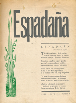 Surgida al calor de la tertulia literaria que tenía su sede en la Biblioteca Azcárate, junto a la Catedral leonesa, la revista Espadaña fue fundada en 1944 por Antonio González de Lama —bibliotecario y sacerdote de ideas liberales—, Victoriano Crémer, Eugenio de Nora, Manuel Rabanal y Luis López Santos -—aunque la responsabilidad de su redacción recayó enseguida sobre los tres primeros—. González de Lama aportó la autoridad moral y el pensamiento crítico, Crémer la concepción de una poesía realista y desarraigada que fue calificada de “tremendista” y De Nora el compromiso político. El inconformismo y afán renovador de sus promotores alentaron además intensas polémicas poéticas desde los primeros números.