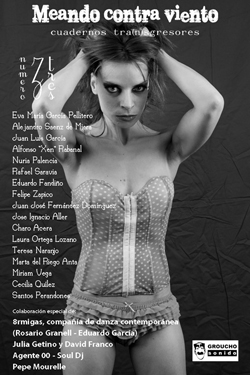 “Se trata de un cuaderno-fanzine donde he invitado a colaborar a distintos escritores, escultores, fotógrafos, ilustradores, pintores… para que plasmen su manera de ver o sentir la transgresión”, explica su promotor, para quien Meando contra viento es, sobre todo, “una manera de expresar libremente nuestra forma de ver las cosas, tal cual las sentimos o la vemos. Con un único tema: la tras(n)gresión”.