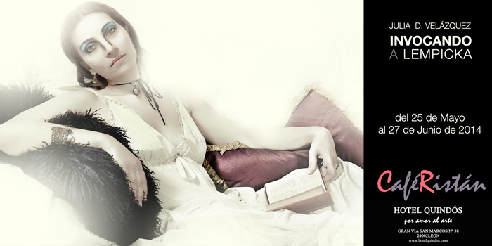 Este domingo 25 de mayo, a la una del mediodía, inaugura una nueva exposición de fotografías en los salones del Café Ristán (Hotel Quindós) de León, acompañada por la artista Charo Acera, que fue su profesora de Escultura. La muestra, que lleva por título «Invocando a Lempicka», quiere ser un homenaje a la visión femenina de la pintora polaca Tamara de Lempicka, nacida en 1898.