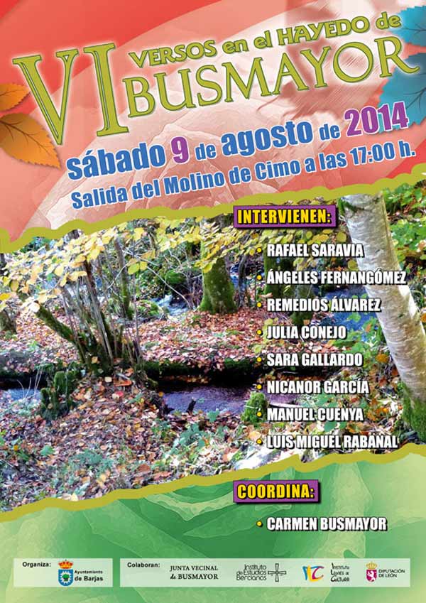 El hayedo reunirá el próximo sábado 9 de agosto a nueve poetas: Rafael Saravia, Ángeles Fernangómez, Remedios Álvarez, Julia Conejo, Sara Gallardo, Nicanor García, Manuel Cuenya y Luis Miguel Rabanal —de quien se leerán sus poemas, aunque él no pueda asistir físicamente—, junto a la propia Carmen Busmayor. Sonarán también las gaitas y «la música de la naturaleza», según los organizadores.