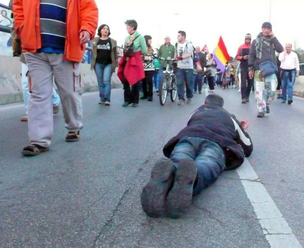 El resultado es un documental de 70 minutos que recoge el paso de la Columna Noroeste por Castilla y León, experiencia que le lleva a acercarse a historias como la de Adrián, un joven del Bierzo de 20 años que decidió sumarse a la marcha por su hermano pequeño. «Me contó que veía el futuro muy negro, que no encontraba trabajo y que había iniciado la marcha para demandar que éste no tuviera que pasar por lo que había tenido que pasar él», continúa el director de este documental. Otras personas que aparecen en este largometraje son beneficiarios de la Ley de Dependencia que de un día para otro dejaron de serlo o trabajadores de la construcción afectados por un ERE. «A lo largo de esos días cada uno de ellos me fue contando su historia y por qué estaba allí. También recogí lo que iba pasando en cada etapa, desde las salidas a primera hora de la mañana hasta la llegada por la tarde. En todo este tiempo se puede ver en qué condiciones hacían el recorrido, cómo comían o lo que sufrían durante la marcha, ya que a muchos les costaba andar», continúa el director de este trabajo, quien en todo momento estuvo participando en este recorrido como uno más de ellos.