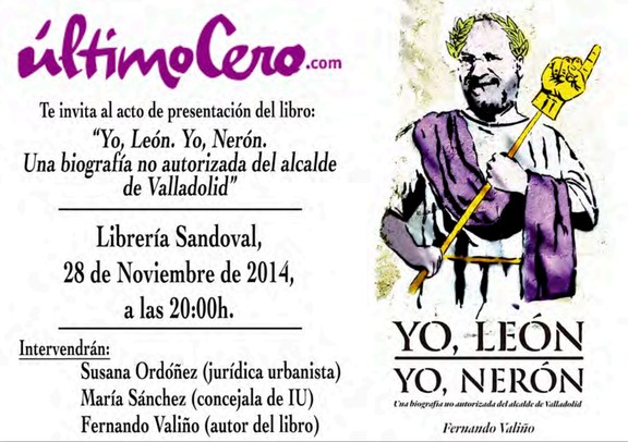 El periodista gallego afincado en Valladolid Fernando Valiño presenta este viernes, 28 de noviembre, el libro «Yo León, Yo Nerón. Biografía no autorizada del alcalde de Valladolid».