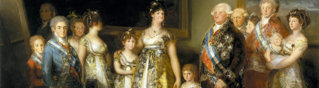 En la de Carlos IV, Goya abarrotó el cuadro con destellos de ropajes y condecoraciones, con personajes que asisten impávidos y algo perplejos a una suerte de disolución por saturación, como si su categoría viniese otorgada por el efusivo rebosamiento de esa mera presencia. Era el final. En el lienzo de López no hallamos poses ceremoniales ni distinciones de indumentaria o símbolos del poder: podría ser el retrato de cualquier otra familia (oligárquica), trajeada, posando para la ocasión.