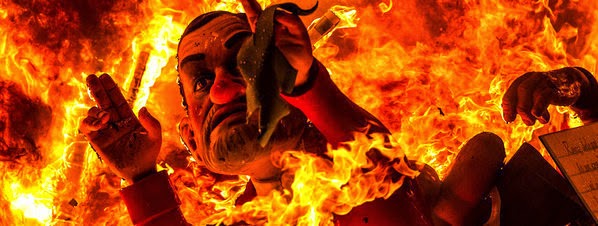 Los pobres, los enfermos, los parados, los indignados y los ofendidos, los defraudados y los burlados pueden tomarse un relaxing cup, por qué no, e ir a votar a los mismos tipos, porque, a partir justamente de ahora (de ahora, oigan bien), habrá trabajo, médicos, profesores, hasta bomberos habrá… y es que empieza ¡tacháaaaan! el caloret de l’ilusió. El caloret de la festa. Porque ja estem en falles. La plantá ha comenzado, el cartón piedra ocupa calles y mentideros. Hasta la nit del foc. Patético el caloret.