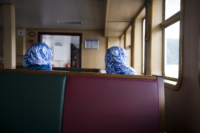 Yeki bud, Yeki nabud. Había alguien, no había nadie… Y así es el mar, como esos pañuelos de aguas en la cabeza. “Traigo todo el mar en la cabeza / de aquel modo en que las madres jóvenes / dan de mamar a sus hijos”, decía Eugenio de Andrade, tarareando su nana en la bahía. Ellas flotan de espaldas a nosotros en este mundo invertido de las despedidas en que, quizás, rojo significa pasar y verde quedarse quieto. Promesas del Este. El último ferry trae una nostalgia de seda, un sabor a sal de cementerio marino y un verso de espuma: “El mar, el mar siempre recomenzando”, que hace zozobrar nuestra imaginación. Lo que la mirada detuvo para siempre ya no puede llamarse más transbordador.