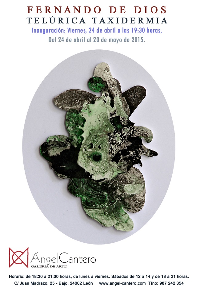 La galería de arte Ángel Cantero (León), a punto de celebrar su 2º Aniversario, inaugura este 24 de abril «Telúrica Taxidermia», del zamorano Fernando de Dios. El artista muestra su obra más reciente: una colección de obras de distintos formatos en las que indaga, desde el lenguaje del expresionismo abstracto, en el proceso de creación y destrucción de la pintura.