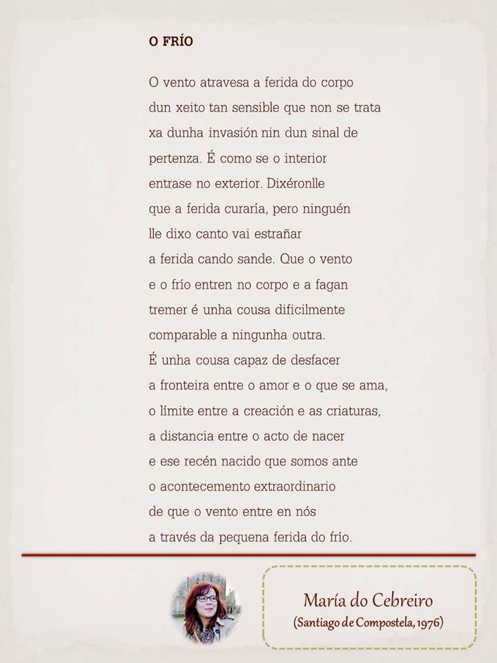 cartel maria do cebreiro 18 de mayo de 2015 Return to: «Le Pasquín 2015» / Poemas de María do Cebreiro y Eloísa Otero, con intervención sensorial de Sara LostumMáxima resolución (720 × 960) Image navigation Previous Image Siguiente imagen Poema de María do Cebreiro, maquetado por Ángeles Rodríguez para el “Tendedero” del Pasquín.