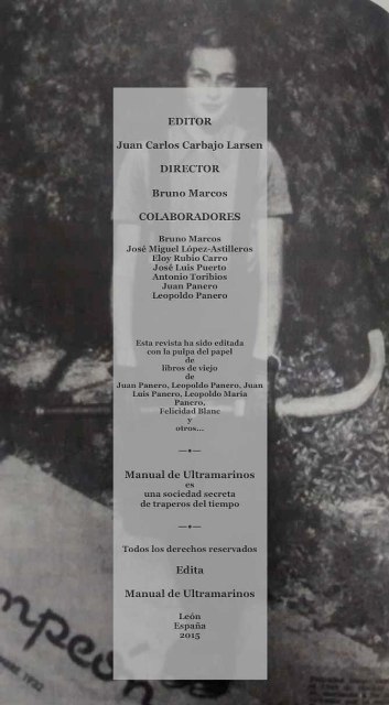 Esta revista quiere recuperar la materialidad que se pierde en la edición virtual, por lo que reclama el tacto, el olfato incluso y declara haber sido editada con pulpa de papel de libros de viejo de Juan y Leopoldo Panero, Juan Luis y Leopoldo Mª Panero, Felicidad Blanc y otros. Es por ello una revista que incorpora el tiempo y la materia que vieron aquellas vivencias motivo de sus escritos y aquellas otras que se hicieron al ser leídos.