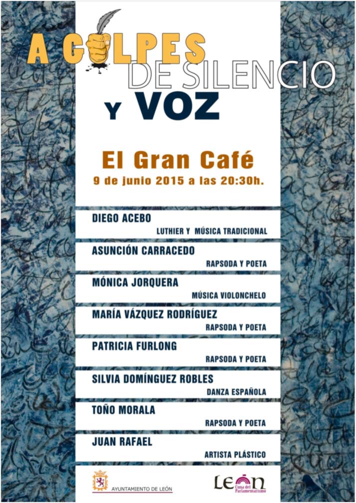 El cartel es obra del artista leonés Juan Rafael (alias Rafa Murciego), quien durante el recital realizará en directo en el Gran Café una obra conmemorativa del evento “A golpes de Silencio y Voz”. Coordinará y presentará el acto el poeta Toño Morala.