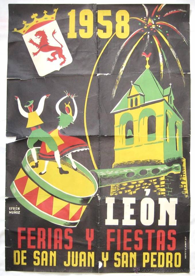 cartel 1958 firmado por Efrén Muñoz 20 de junio de 2015 Return to: ¿Que no te gusta el cartel de las fiestas de León? ¡Revélate y haz uno tú…!Máxima resolución (680 × 960) Image navigation Previous Image Siguiente imagen Cartel de 1958, firmado por Efrén Muñoz.