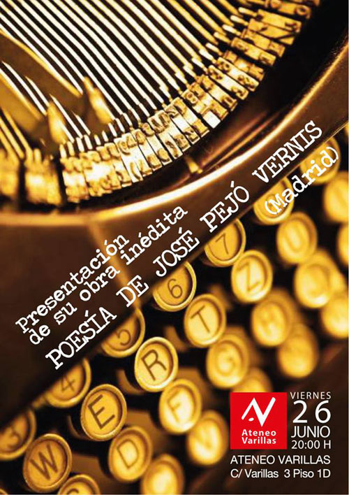 2-poesía-Peió 25 de junio de 2015 Return to: Antonio Orihuela y José Pejó en el Ateneo Varillas… seguidos del Ágora de la PoesíaMáxima resolución (500 × 708) Image navigation Previous Image Cartel del recital de José Pejó.