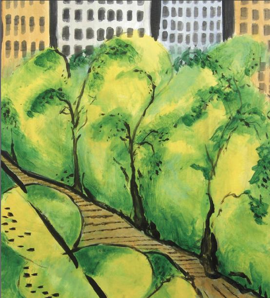 Así, obra tras obra, yuxtapone y superpone imágenes realistas del perturbador espacio urbano, registrando el rumor de la vida que transcurre sobre sus aceras, la verticalidad vertiginosa de los rascacielos o la humedad verde de macizos y árboles, los cuales parecen competir con los edificios en sus movimientos ascensionales, lanzando la mirada hacia un cielo imposible, casi desaparecido.