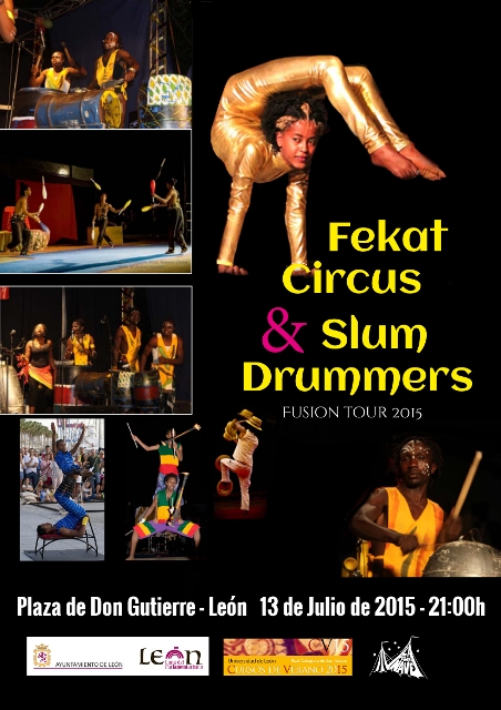 Acrobacia, malabares, clown, contorsionismo, danza. Fekat Circus & Slum Drummers fusiona todas estas facetas propias del espectáculo circense con la música. Sus protagonistas son diez artistas circenses y cinco músicos percusionistas. Y la cita, este 13 de julio, llega de la mano de La Pequeña Nave, Universidad de León Cursos de Verano y la Concejalía de Cultura del Ayuntamiento de León.