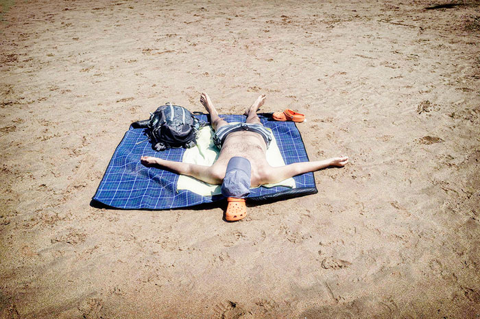 El hombre milimétrico o, mejor, milimetrado, desafía matemáticamente los elementos. Un maestro oriental nos diría: “Fíjate, tal y como doblen la toalla, así harán el amor”. Y, en rigor, nada es mejor ni peor. Hay quien tira sus cosas sobre la arena, sin más. Y algunos otros, parecen medir la relación del meridiano de Greenwich con la esquina de su esterilla. El cuerpo parece, entonces, un reloj solar o un astrolabio. Una mezcla del estudio de da Vinci y la Teoría de la Relatividad. Hay quienes se ponen al sol con una fórmula, como si quisiesen cuadricular la arena. Admirable, esa forma de aunar el azar y la necesidad. En cierta ocasión, vi a un niño doblar la toalla con la exactitud con la que los forenses diseccionan un cadáver. Gosto moito de te ver, leonzinho, caminando sob o sol… (Caetano siempre sirve como antídoto).
