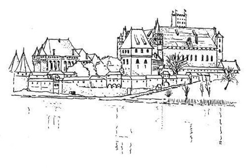 “A finales del otoño de 1735, Hinrich Brunsberg, que había estado paseando cabizbajo por el puente que une el Hoch y el Mittelschloss en el castillo de Marienburg, en la antigua Prusia occidental, contemplando cómo el viento arrastraba las hojas de los abedules por el lago inmenso que en otros siglos había servido de foso y a una bandada de alocados estorninos que se recortaba sobre el cielo color cereza de aquel atardecer, volvió a su celda.