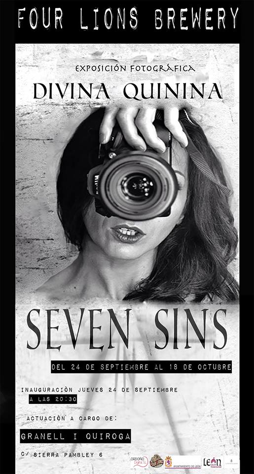 Las siete fotografías de su primera exposición, con la que Divina Quinina se presenta al público en León, formaron parte de un proyecto para realizar la cartelería de otro proyecto, en este caso de un primo lejano suyo que ha estudiado dirección de cine en el ESCAC, Víctor López G., y que se ha embarcado, con otros seis directores, en la aventura de grabar una película de terror coral sobre «Siete maneras de ir al infierno», «Seven Sins», en la que cada uno de los siete directores abordará uno de los pecados capitales, explorando distintas perspectivas.