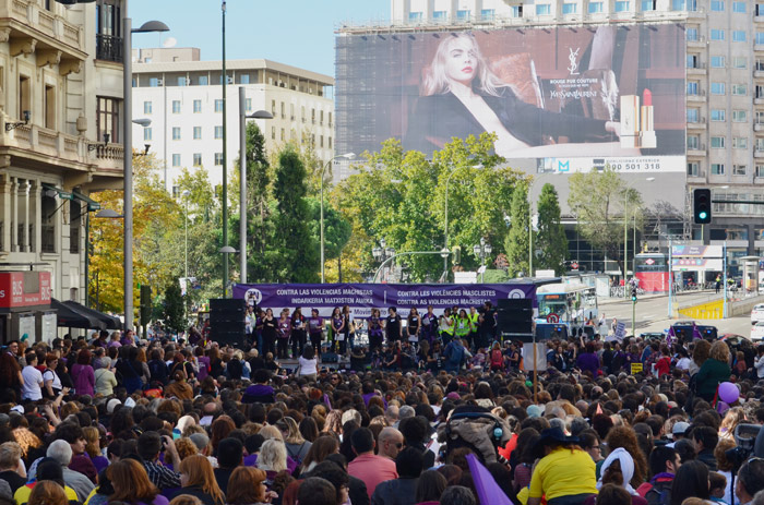 Madrid se convirtió este sábado 7 de noviembre en el epicentro de un grito común en repulsa de los asesinatos, el acoso laboral y sexual, la discriminación, el sistema patriarcal y el odio contra las mujeres. Más de doscientas mil personas se unieron en una histórica Marcha Estatal Contra las Violencias Machistas con gritos reivindicativos emitidos en todas las lenguas del estado.