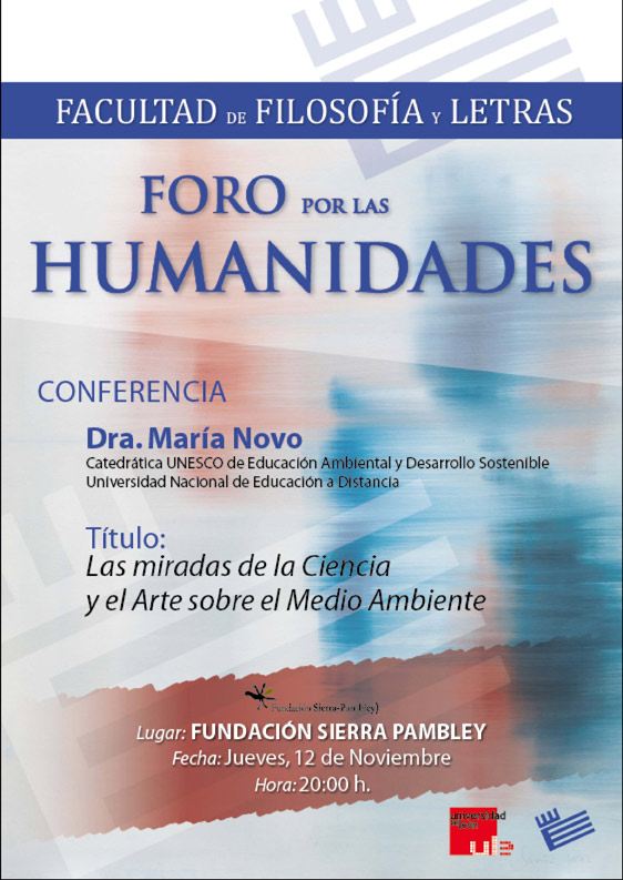 La primera de estas iniciativas del Foro de Humanidades tendrá lugar el jueves 12 de noviembre con la conferencia de María Novo, que planteará la confluencia de posiciones desde la ciencia y el arte sobre el desarrollo sostenible y los acuciantes problemas medioambientales. Su intervención será a continuación de la exposición y lectura de dicho Manifiesto.