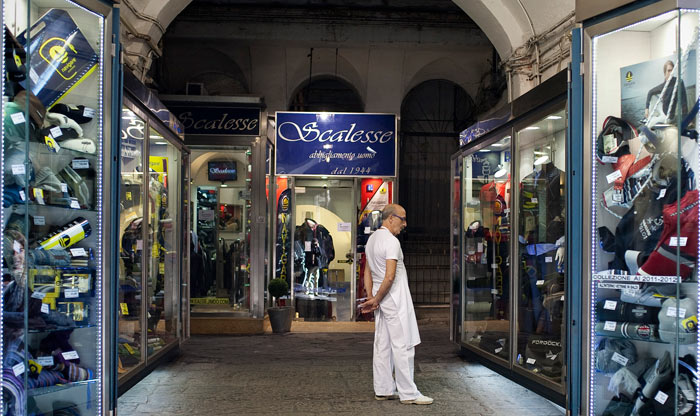 Sonámbulos, estáticos o detenidos en el movimiento; maniquíes, personajes desatentos, solitarios y silenciosos en la ciudad del bullicio. Nápoles está muda, Nápoles deja cadáveres: Vedi Napoli e muori. Es un tipo de deceso que proporciona el que mira.