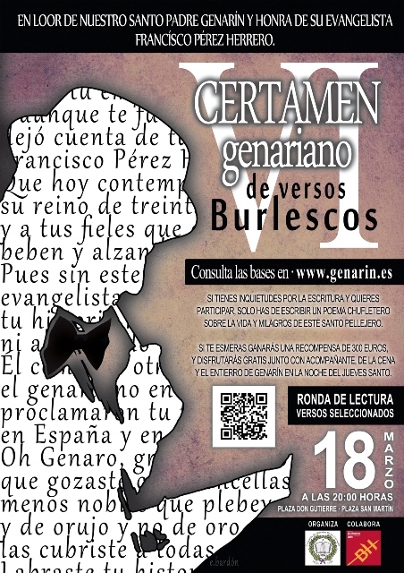 cartel certamen 12 de enero de 2016 Return to: La Cofradía de Nuestro Padre Genarín convoca la sexta edición de su certamen poético de Versos BurlescosMáxima resolución (452 × 640) Image navigation Cartel VI Certamen Genariano Versos Burlescos