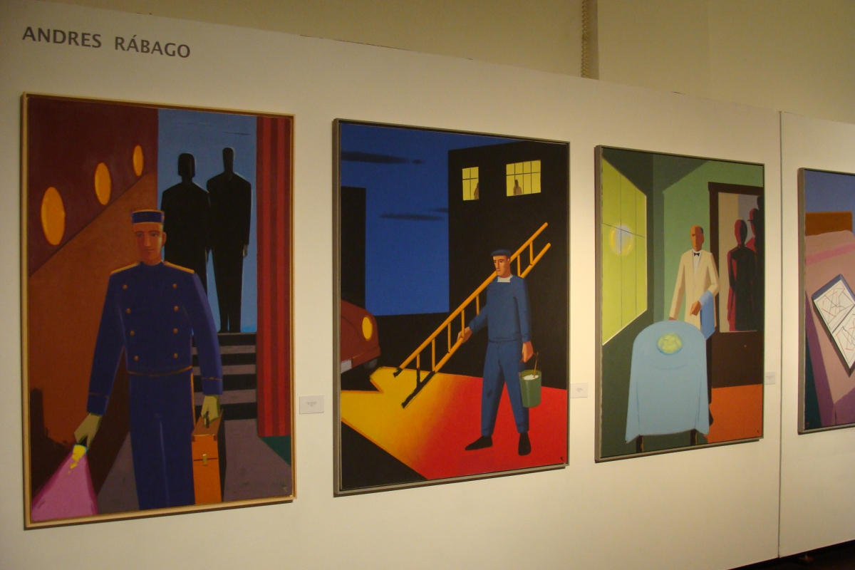 Una decena de lienzos de gran formato, realizados en los dos últimos años y ya firmados con su nombre y apellido, forman parte de la tercera parte de esta muestra. Sus protagonistas son gente normal y corriente: el botones de un hotel, un pintor, un camarero, un minero, la pasajera de un tren… Todas estas obras responden a un mismo objetivo que el propio Rábago describe con estas palabras: «la búsqueda de la belleza que anida en todo ser humano». La paleta del artista se llena de rojos, verdes, amarillos, azules… y la palabra desaparece no porque no haya nada que explicar, sino porque esta vez no le hace falta añadir nada más.