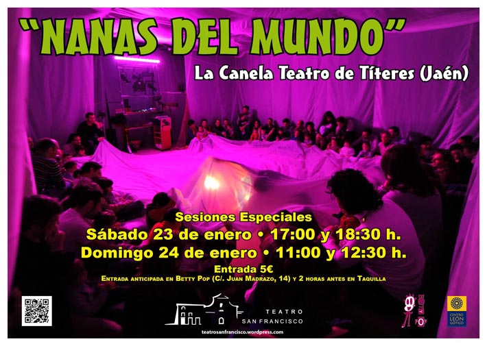 “Nanas del Mundo” es un espectáculo de teatro para bebés (de 18 meses a 4 años) que llega este fin de semana al Teatro San Francisco (León), de la mano de La Canela Teatro de Títeres (Jaén). Habrá cuatro pases, dos el sábado 23 de enero por la tarde y otros dos el domingo 24 de enero por la mañana.
