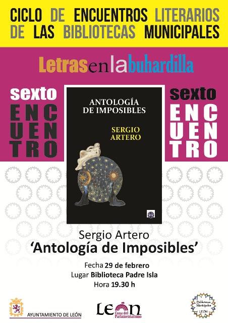 Cartel Febrero Antología de Imposibles 29 de febrero de 2016 Return to: Sergio Artero en el ciclo «Letras en la buhardilla»Máxima resolución (452 × 640) Image navigation Siguiente imagen Cartel "Antología de Imposibles".