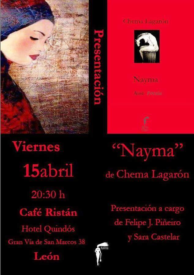 El Café Ristán (espacio cultural del Hotel Quindós, en León) acoge este viernes 15 de abril, a las 20,30, la presentación del poemario ‘‘Nayma» (Karima Editora) de Chema Lagarón. El autor estará acompañado por Felipe J. Piñeiro y Sara Castelar. Se trata de un libro muy especial, escrito con notas de jazz y apuntes de las impresiones de los viajes del autor por todo el mundo.