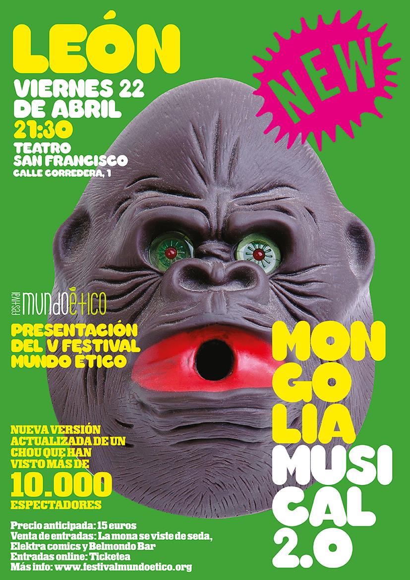 El Teatro San Francisco (León) acoge este viernes 22 de abril, a las 21:30 horas, la presentación oficial del V Festival Mundo Ético, que arranca este año, ni más ni menos con un espectáculo que siempre da mucho de qué hablar y sobre todo, mucho más de qué reír: el Musical de la Revista Mongolia. Entradas: 15 euros.