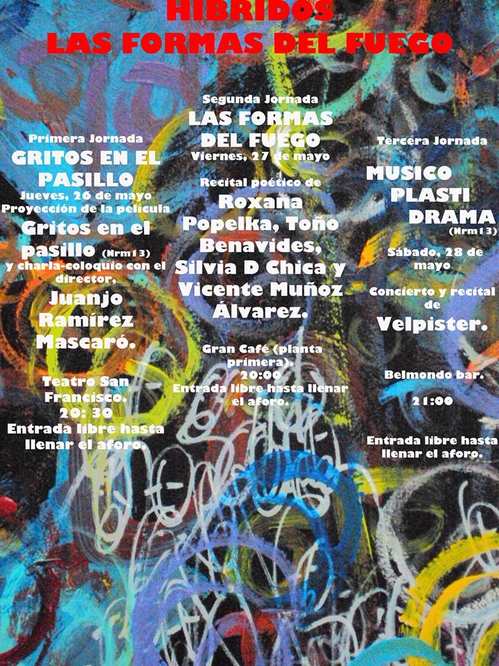 Los días 26, 27 y 28 de mayo se desarrollará en León, organizado por la Concejalía de Cultura del Ayuntamiento, el programa Híbridos: Las formas del fuego, coordinado por los escritores Vicente Muñoz Álvarez y Silvia D Chica. El jueves 26 se proyectará una película de animación de Ramírez Mascaró, el viernes 27 habrá un recital a cuatro voces en el Gran Café y el sábado 28 un «musicoplastidrama» de Velpister en el Bar Belmondo.