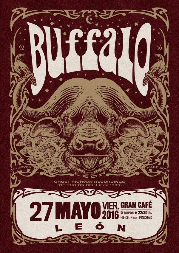 BUFFALO_cartelLEON 25 de mayo de 2016 Return to: Buffalo: “Estamos en plena forma, sólo hemos desempolvado un poco las canciones y ya lucen como nuevas”Máxima resolución (600 × 849) Image navigation Previous Image Portada del disco. Diseño de Mick Baro.