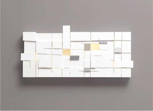 En su tercera línea de trabajo Armesto explora lo que denomina “escultura-bajorrelieves”. En la serie “Urbis”, por ejemplo, construye obras que hablan de procesos urbanísticos, arquitectónicos. “Son obras que hacen referencia a micro-espacios personales que nos conducen a lugares interiores. Creo volúmenes y ventanas ocultas que plásticamente y de un modo esencial nos conducen a la materialidad más pura en lo que refleja lo que es y no es al mismo tiempo, lo que se ve y lo que se oculta”, apunta. “Son obras que parecen conformarse a cada paso del día dialogando con la luz que reciben y con el propio espacio en el que están instaladas. Son esculturas de pared y exentas que casi parecen estar vivas, ya que laten con el espacio y se convierten en sí mismas en apología del ritmo”.