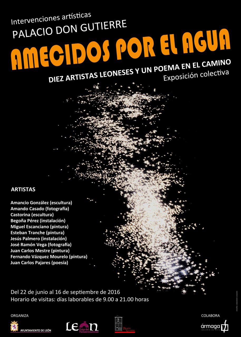 La exposición colectiva «Amecidos por el agua. Diez artistas, un poema y el agua en el Camino» se inaugurará en el Palacio de Don Gutierre (León) el próximo miércoles 22 de junio, a las ocho de la tarde. La muestra, comisariada por Marga Carnero, evoca los ríos que salen al Camino de Santiago por tierras leonesas a través de las obras de Amancio, Escanciano, Tranche, Castorina, Amando Casado, Palmero, Mourelo, Pérez Rivera, Mestre y Vega, a las que se une un poema de Juan Carlos Pajares que reproducimos.
