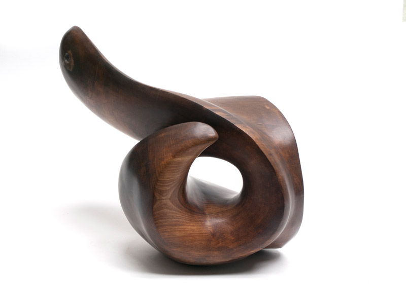 José Antonio Andrés Vera (Zaragoza, 1956). Para este escultor la madera tiene algo de fascinante, la considera como algo vivo, no sólo por su origen en un ser vivo –el árbol–, sino por aquello que perdura en ella, con el movimiento de sus vetas, sus texturas y colores, su calidez y sensualidad, su aroma y su brillo, su tacto. Él quiere que sus obras no sólo se contemplen sino que se palpen y se acaricien; la escultura en su tridimensionalidad ha de necesitar del sentido del tacto, para su integración sensorial. Cinco esculturas en madera de nogal.